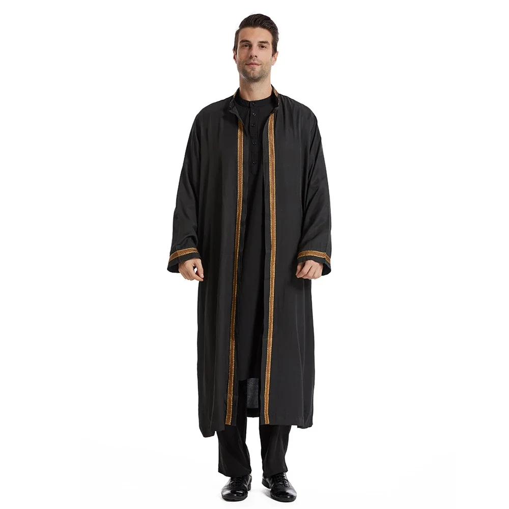 عباية رجالية مفتوحة، ملابس إسلامية سعودية، كيمونو رمضاني، رداء بأكمام طويلة، قفطان دبي، فستان عربي بياقة قائمة