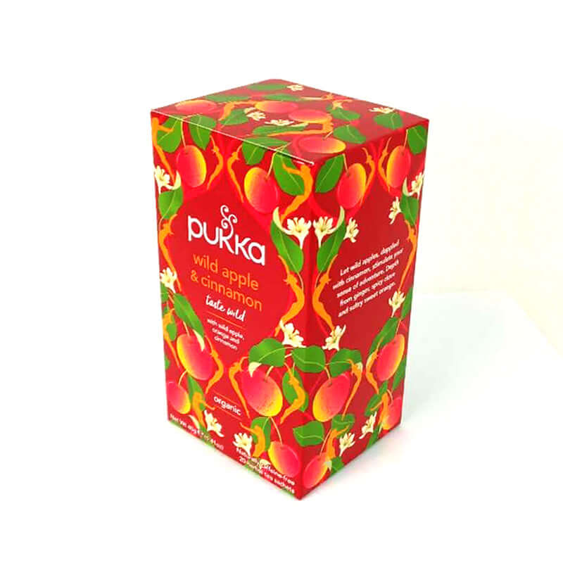 Pukka Wild Apple & Cinnamon es un té de frutas con sabor a manzanas maduradas al sol condimentado con canela y jengibre.