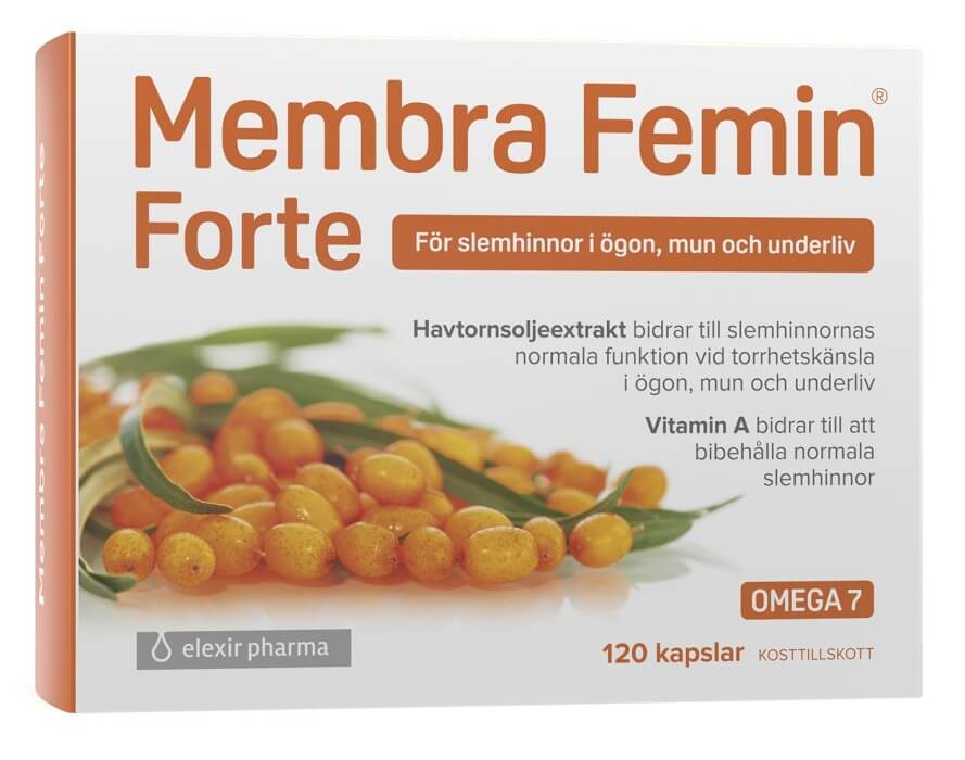 Membra Femin Forte is a food supplement with sea buckthorn and vitamin A that promotes the function of the mucous membranes in the body. We have mucous membranes in the eyes, mouth and abdomen, among other things.