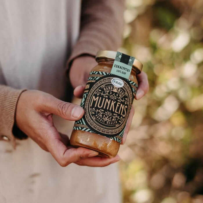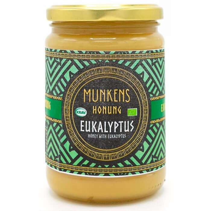 Swedish organic honey from Munkens Hälsa - flavored with eucalyptus, which is known for its antiseptic and antiviral properties.